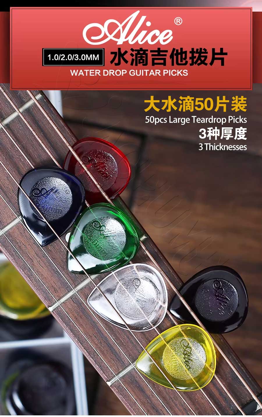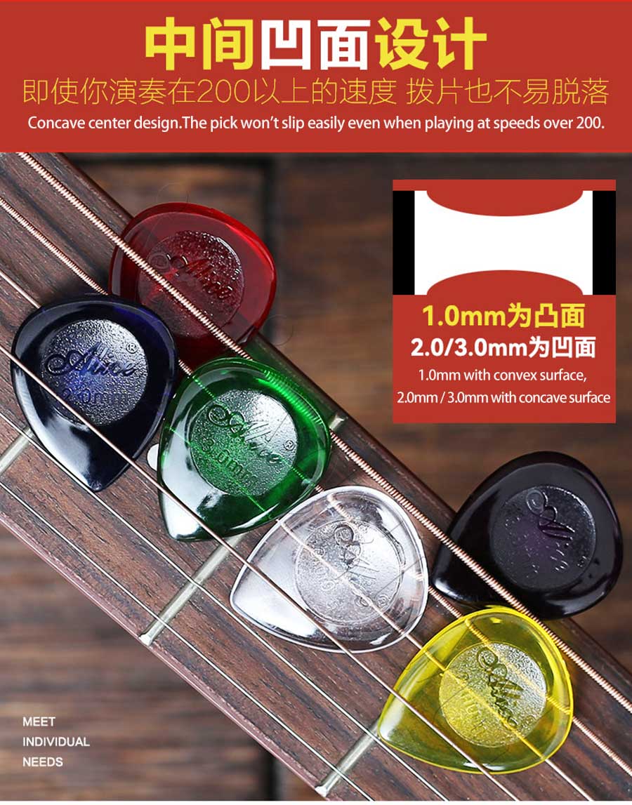 Alice 50pcs Teardrop Picks for Guitar and Bass