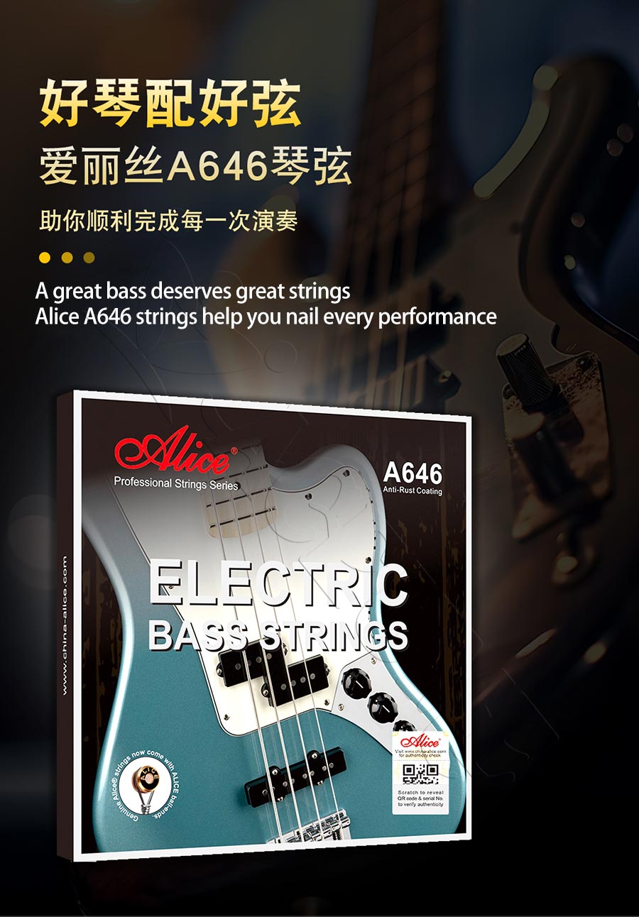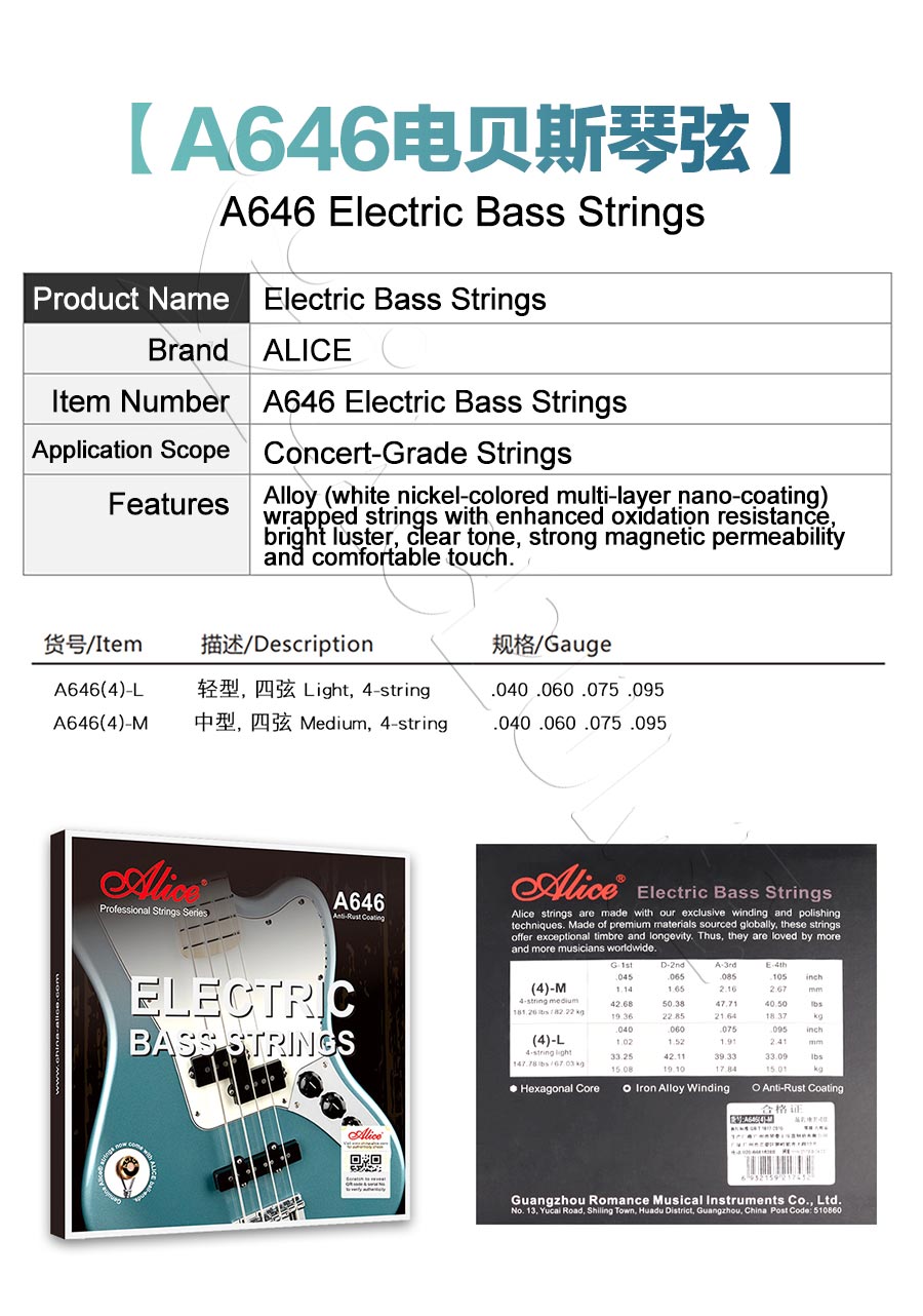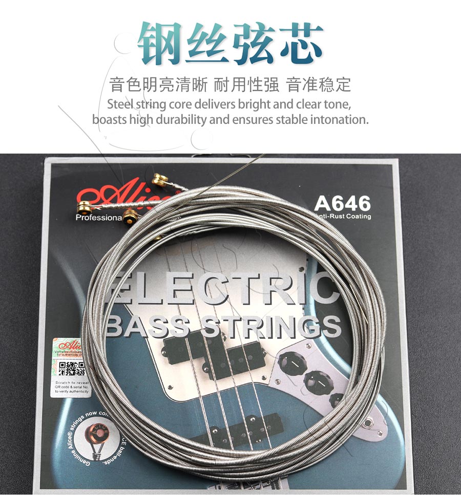 Alice A646 Electric Bass String Set Of 4, Complete Set Of Bass Guitar Strings, Rust Proof Electric Bass Strings