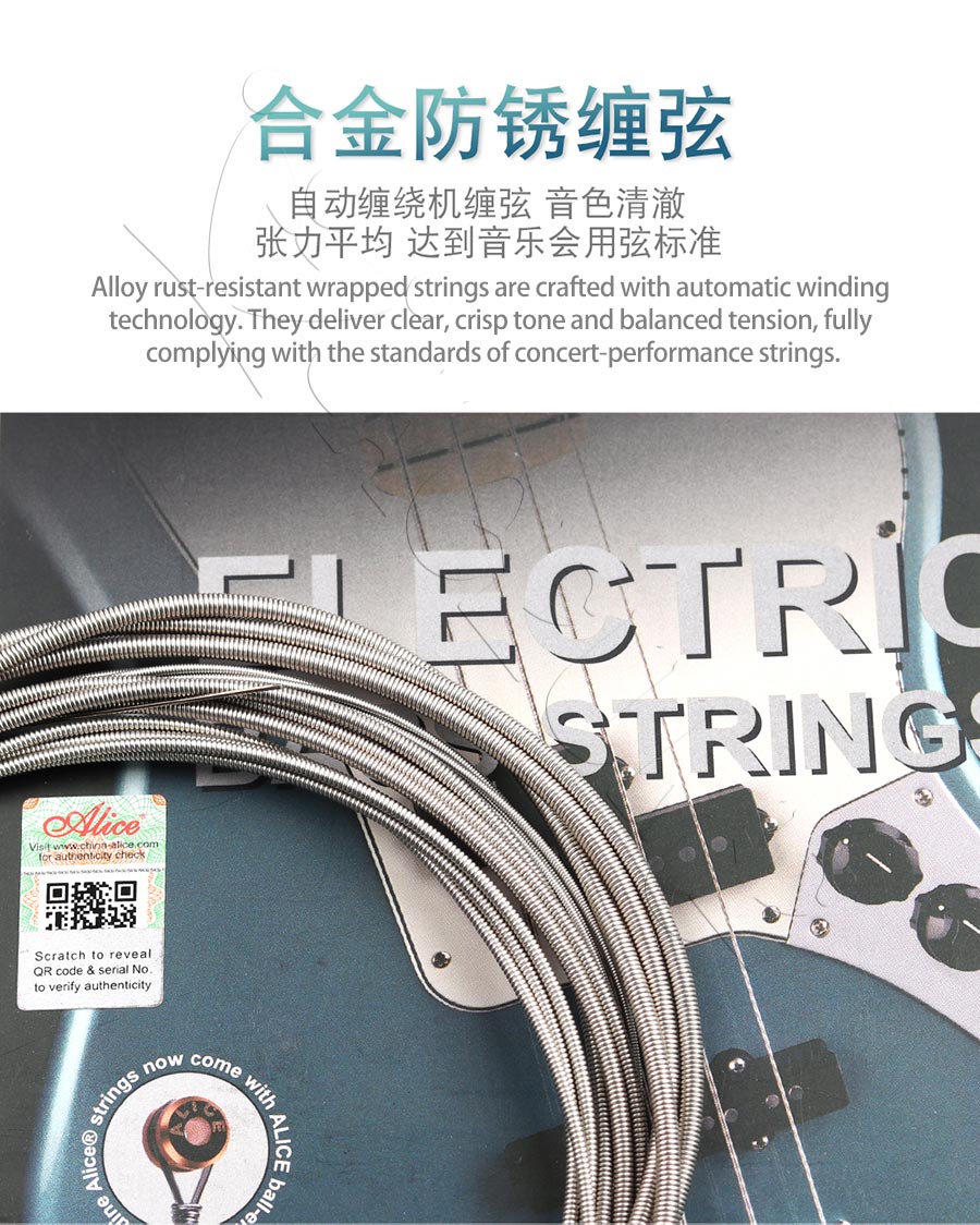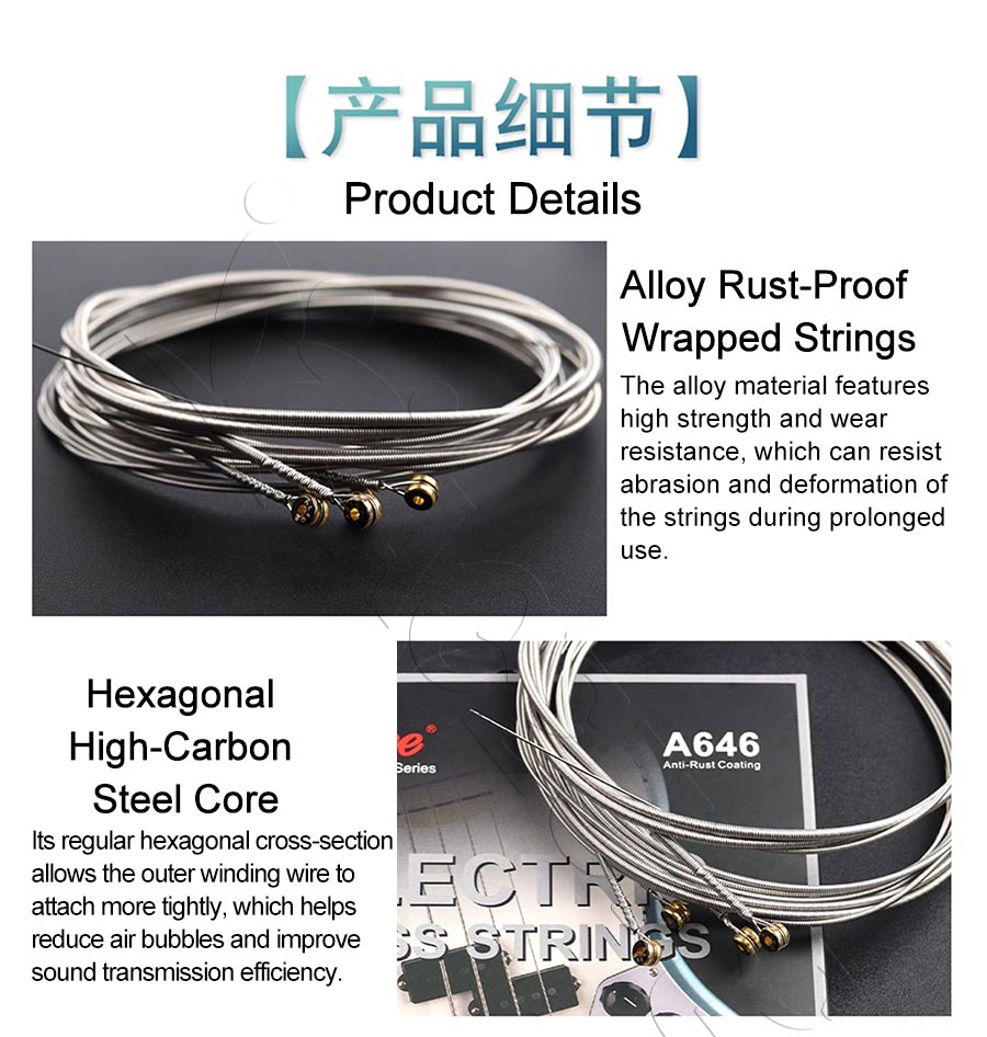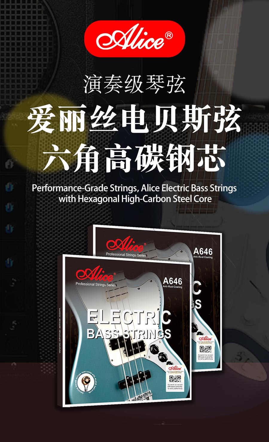Alice A646 Electric Bass String Set Of 4, Complete Set Of Bass Guitar Strings, Rust Proof Electric Bass Strings