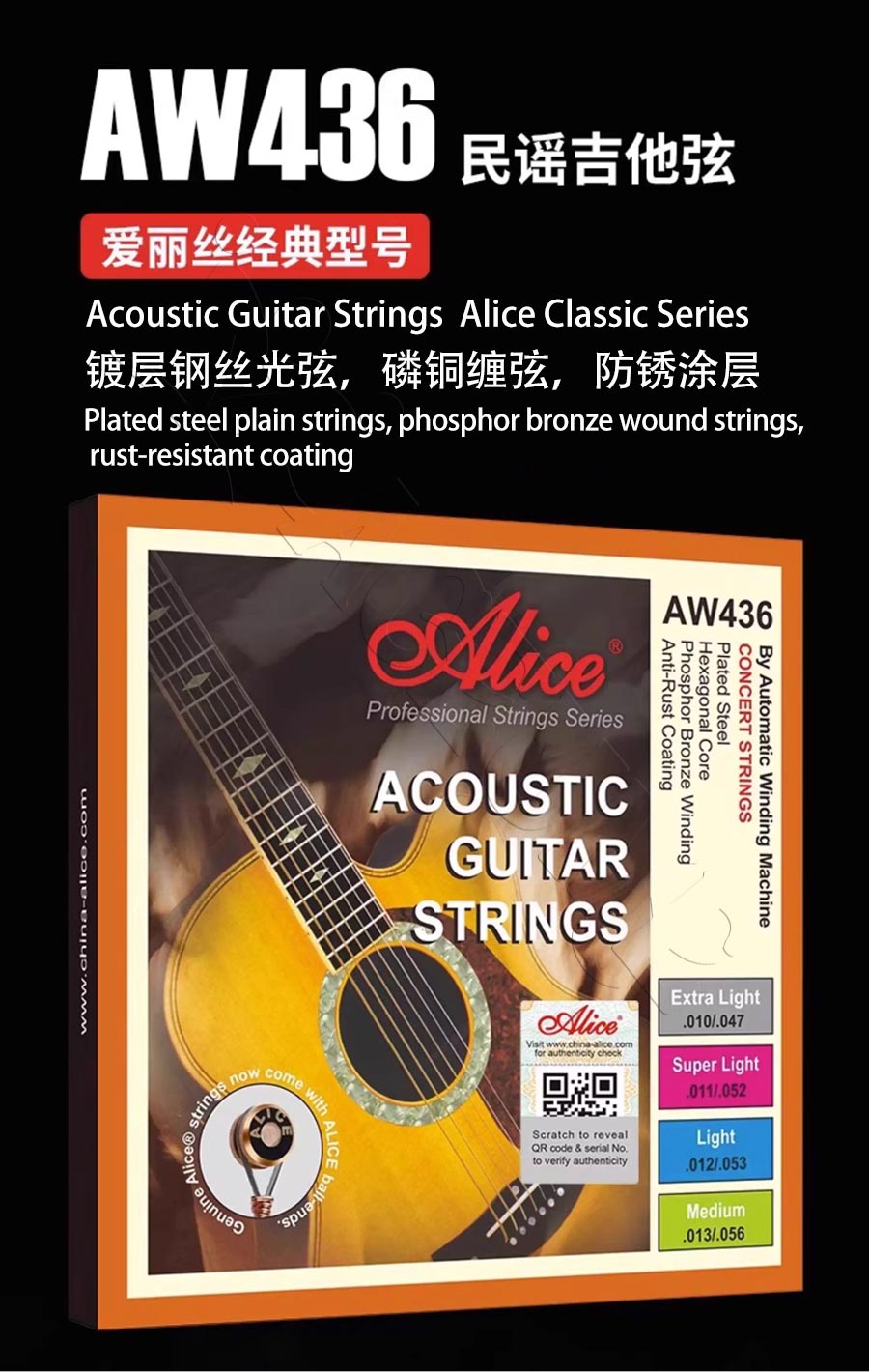 Alice AW436 Phosphor Bronze Acoustic Guitar Strings 6-Piece Full Set Universal Guitar Accessories