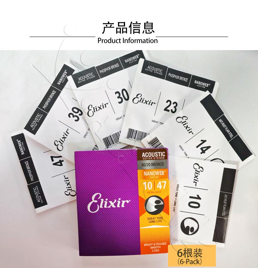 Elixir Guitar Strings, Folk Acoustic Guitar Strings,Genuine Coated Brass Electric Guitar Strings, High-end Strings
