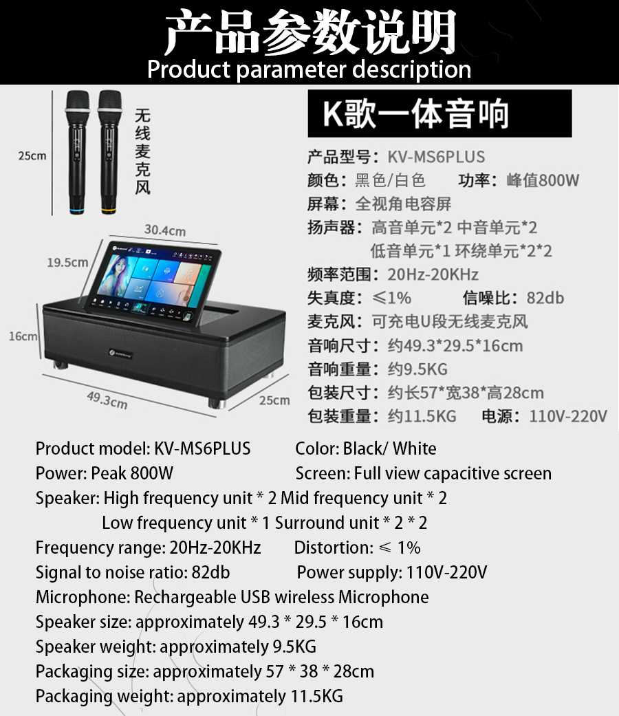 Inandon KODSong KV-MS6Plus Home KTV Song Ordering Machine Home Singing Combination Speaker Sound System Complete Set