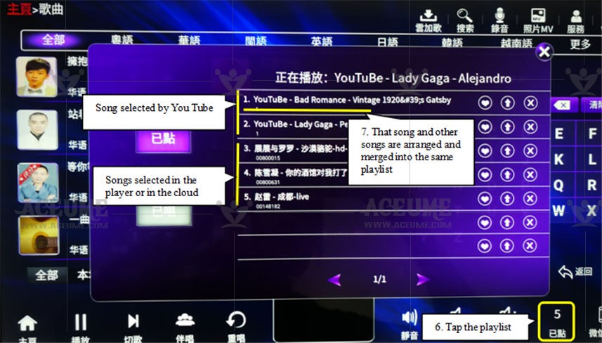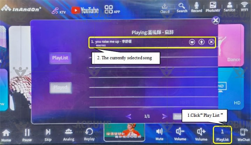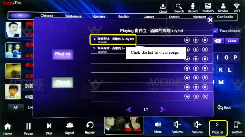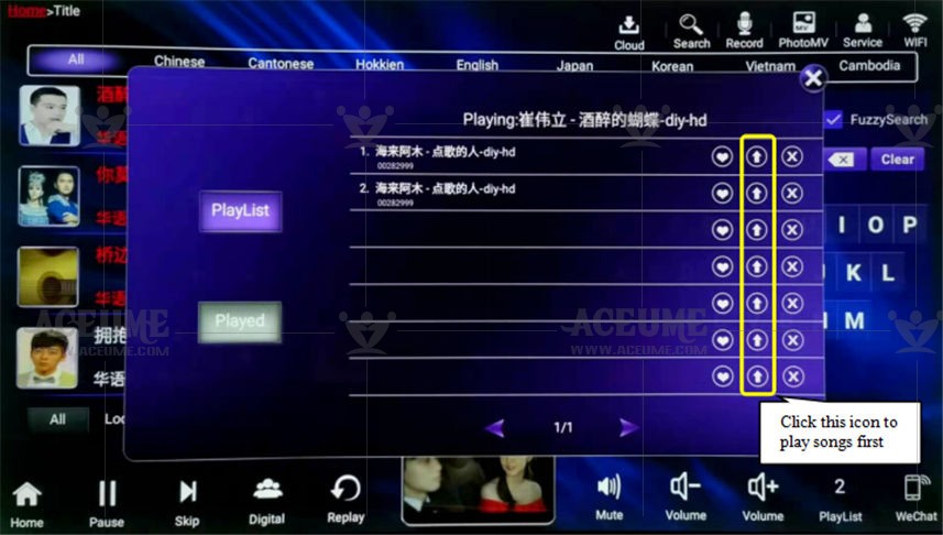 ● Click the【clicked】icon to enter the song list, select【sung】and click【