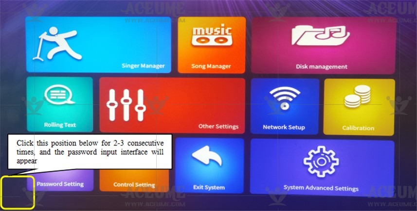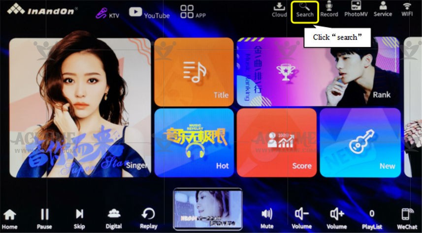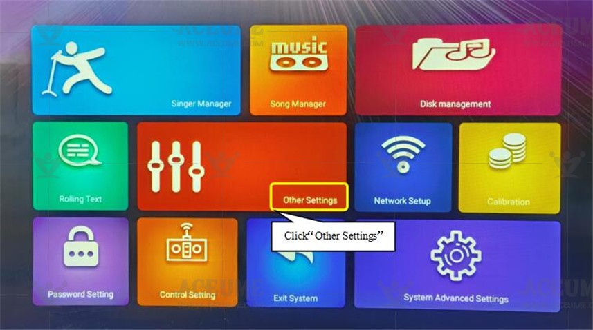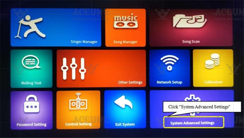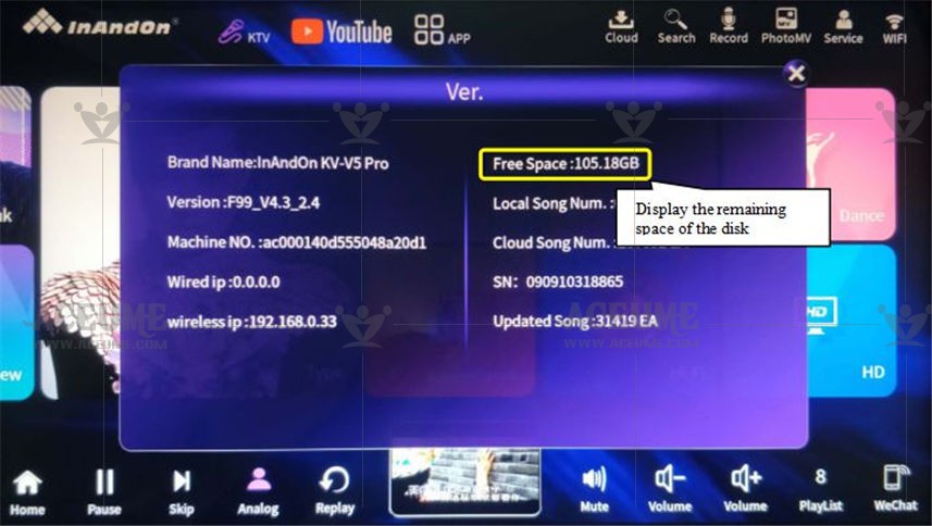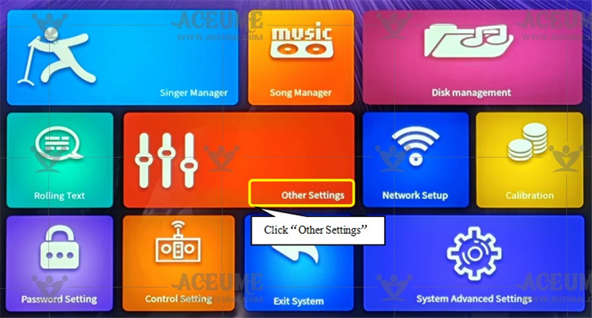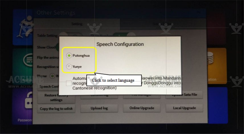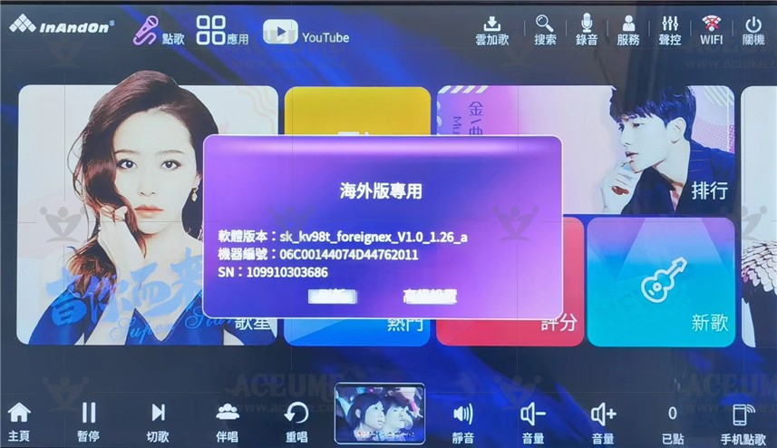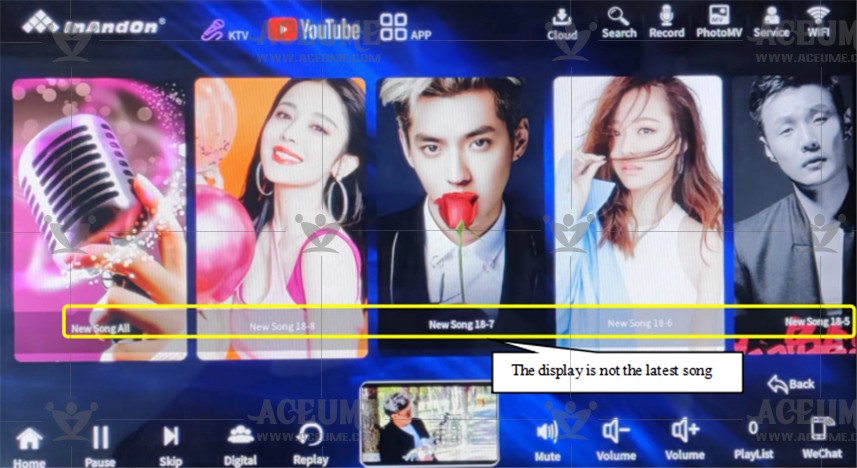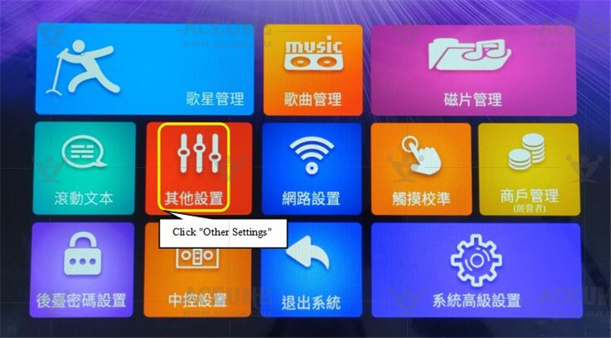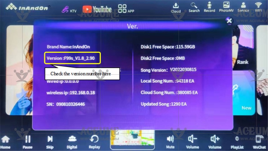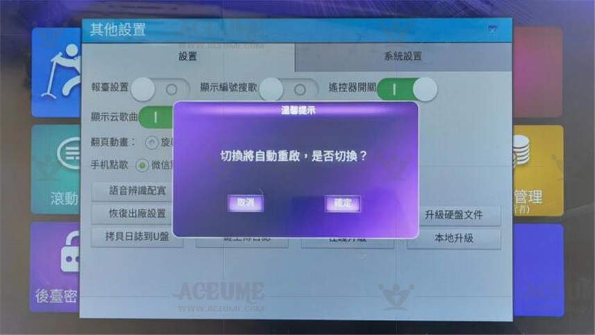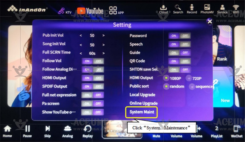 3.How to turn off voice song request function.●Click the 【Service】 icon at the top right of the home page, click the 【Settings】prompt to enter the password: "347437", click "Confirm", enter the"Voice Switch" and set it to "OFF".