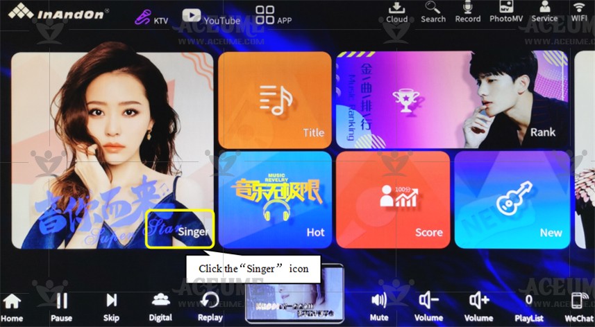 ●Click the【Singer】icon on the homepage to enter the singer list interface.