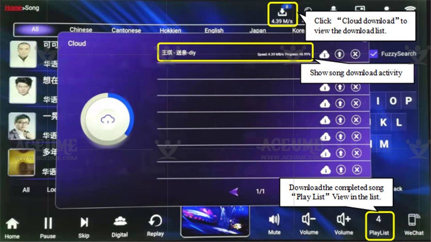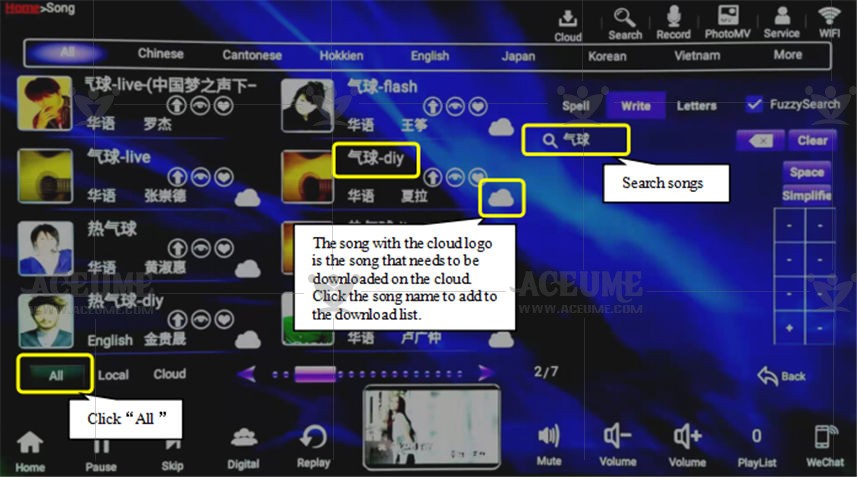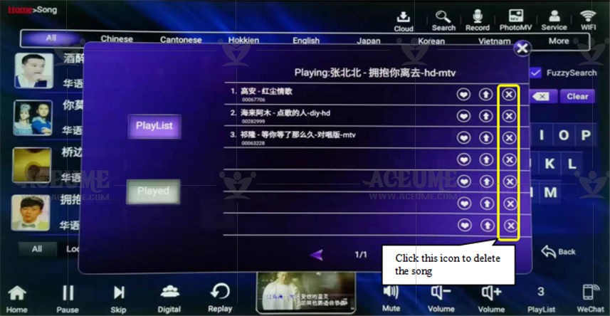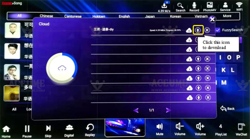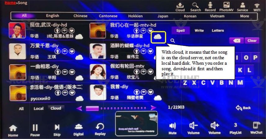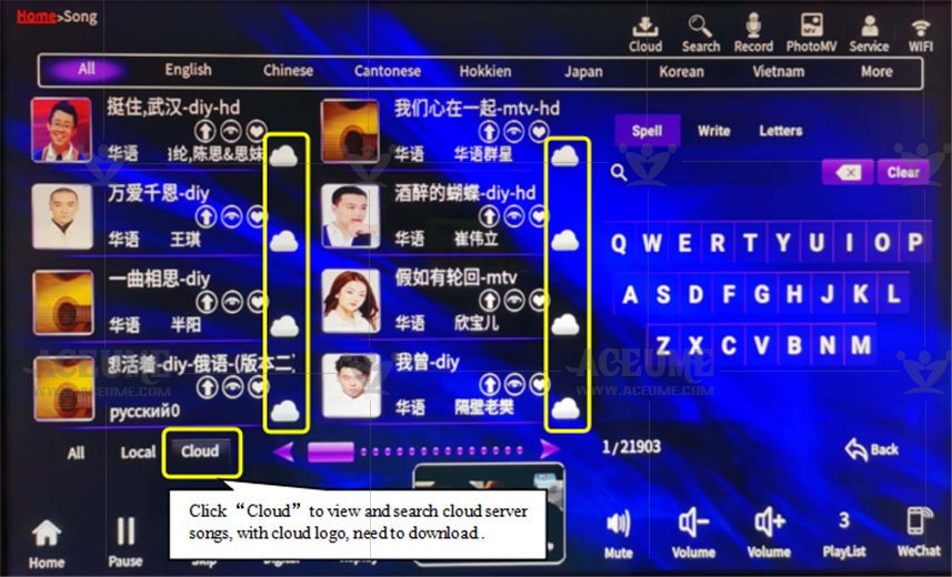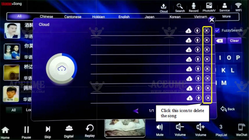 ★ Note: If you want to free up some space to download more new songs, we suggest you delete only Chinese, Cantonese and Taiwanese songs. Because we have backups of these language songs in the cloud. In other words, after deleting the songs in these three languages, you will find that these songs are still listed in the song list. The only difference is that the songs will be marked with【☁】after they are deleted. We do not back up songs in other languages on the cloud server. Once deleted, they will not be searchable.