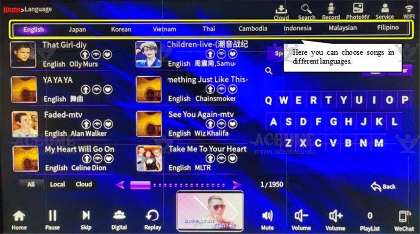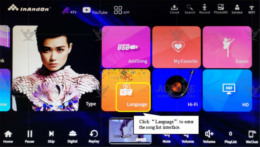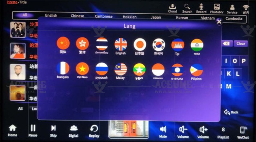 ●On the homepage, click 【Language】to enter the song list interface, and switch songs in different languages as needed.