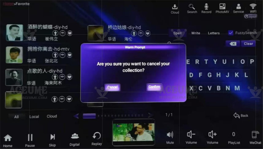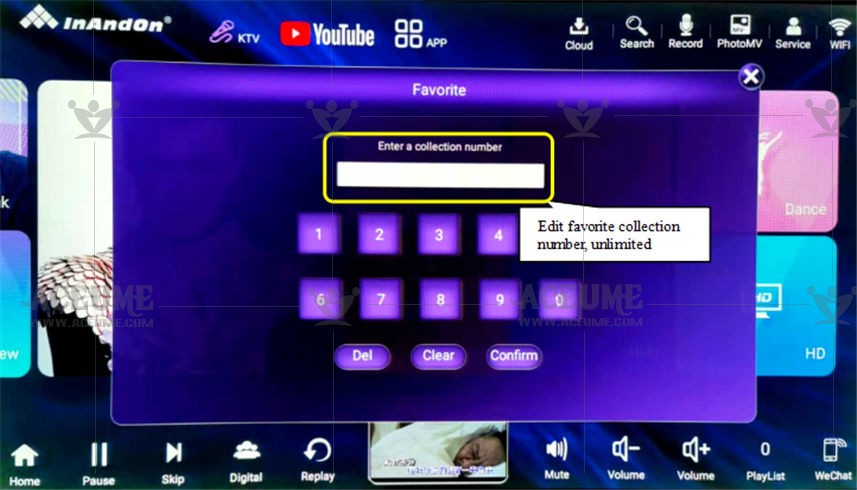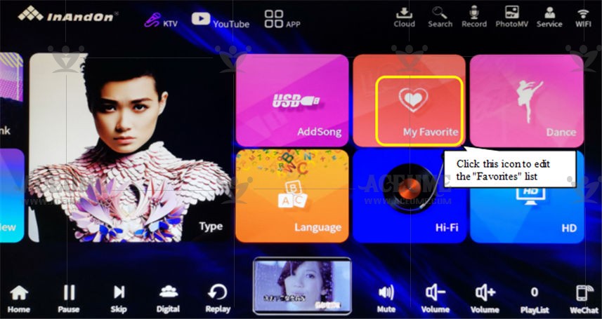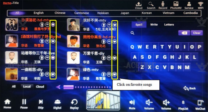 (1)Click 【My Favorites】 to enter the favorite list number, and the favorite song list will be displayed. Just click 【