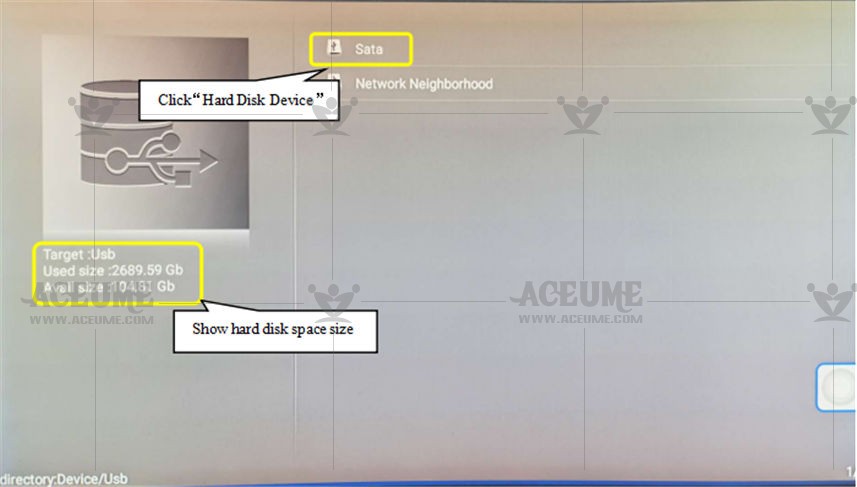 ● On the homepage, click 【App】--【File Manager】--【Hard Disk Device】 to display the hard disk space.
