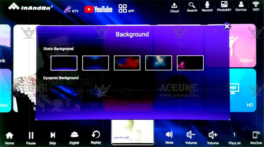 ● Click 【Service】--【Background】is divided into ‘static background’ and ‘dynamic background’, select the background picture you like.