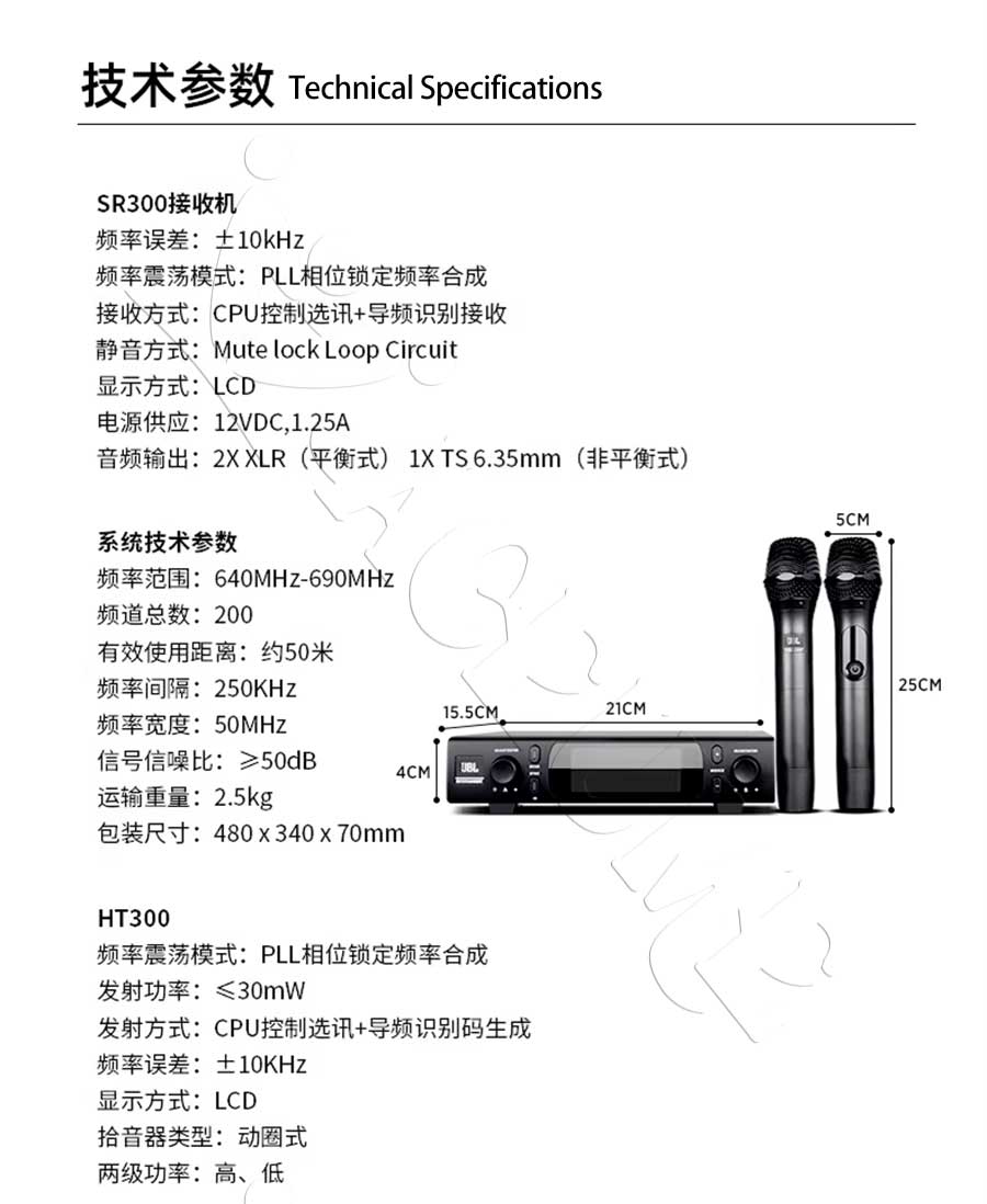 JBL VM300 Wireless Microphone System Intelligent Professional for KTV Bars Home Karaoke and Stage Performances Anti-Howling Microphone for Professional Singing