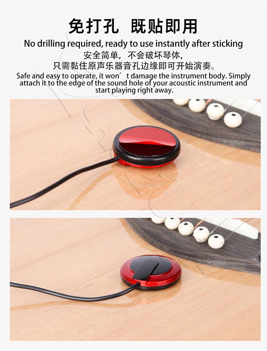 No Drill Acoustic Pickup Universal For Guitar Guzheng Ukulele Kalimba Suction Cup Adhesive Mount Sound Amplification Accessory