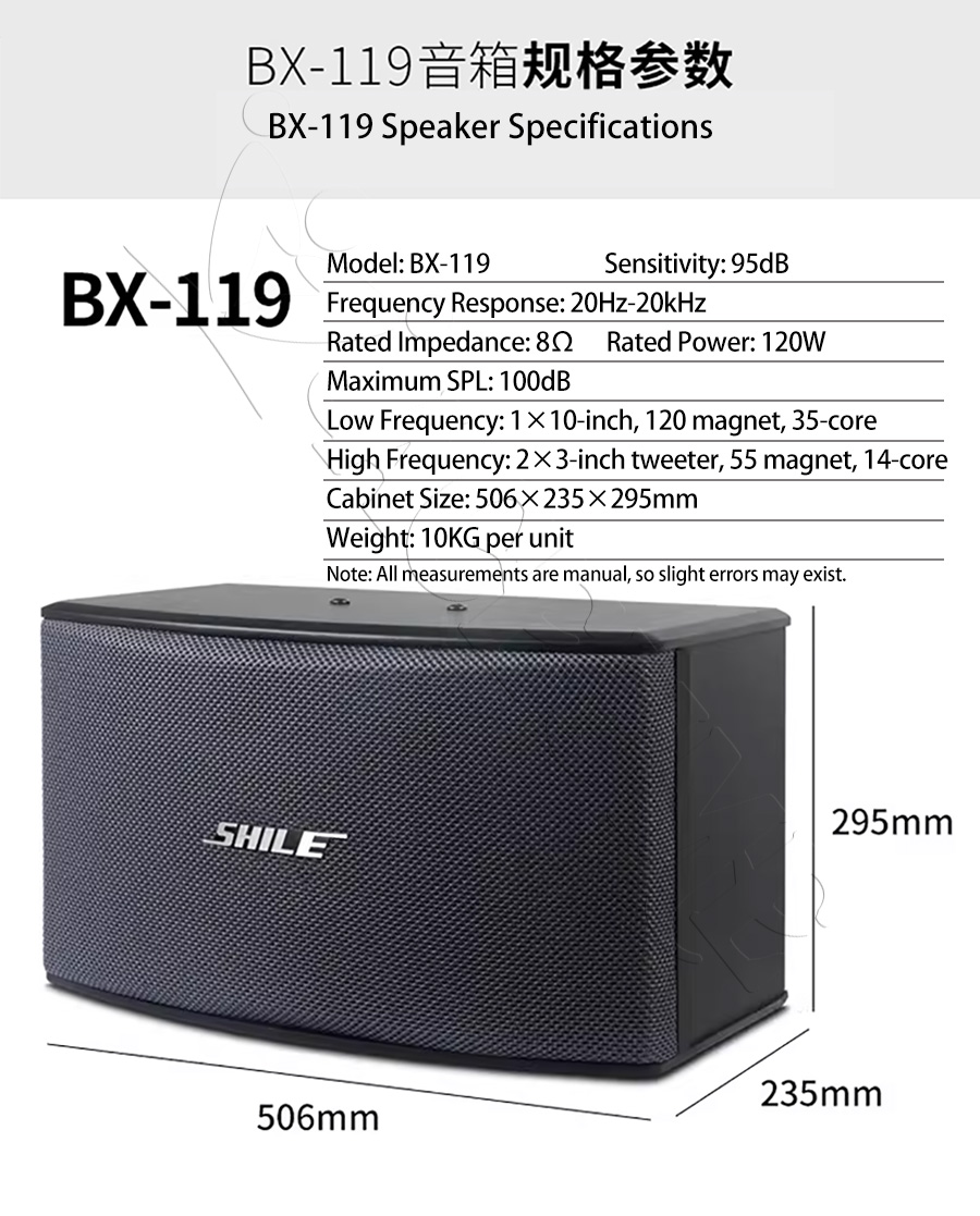 Shile BX-119 Professional 10-inch KTV Karaoke Speakers Background Music Speakers for Conference Training Rooms One Pair