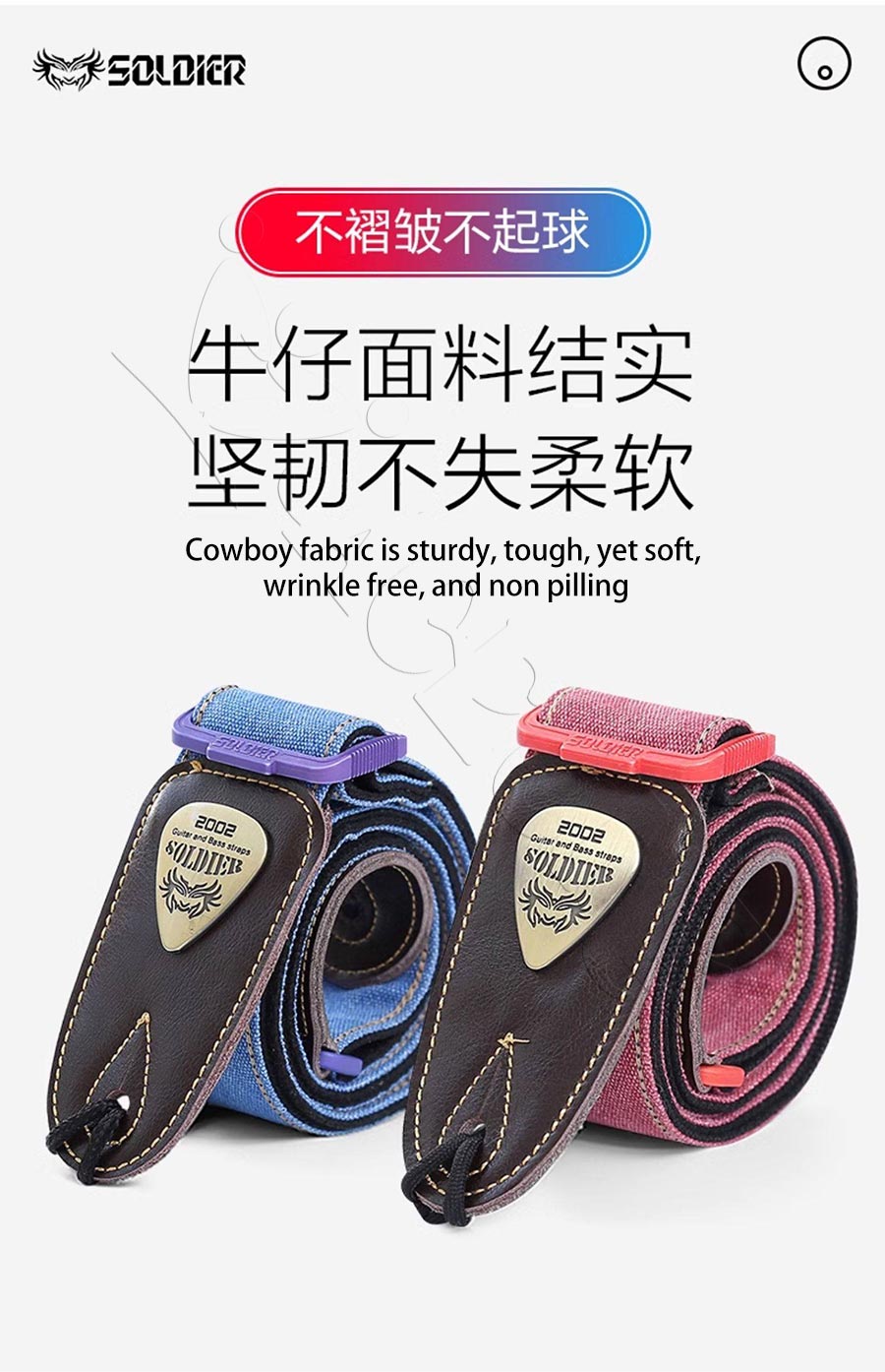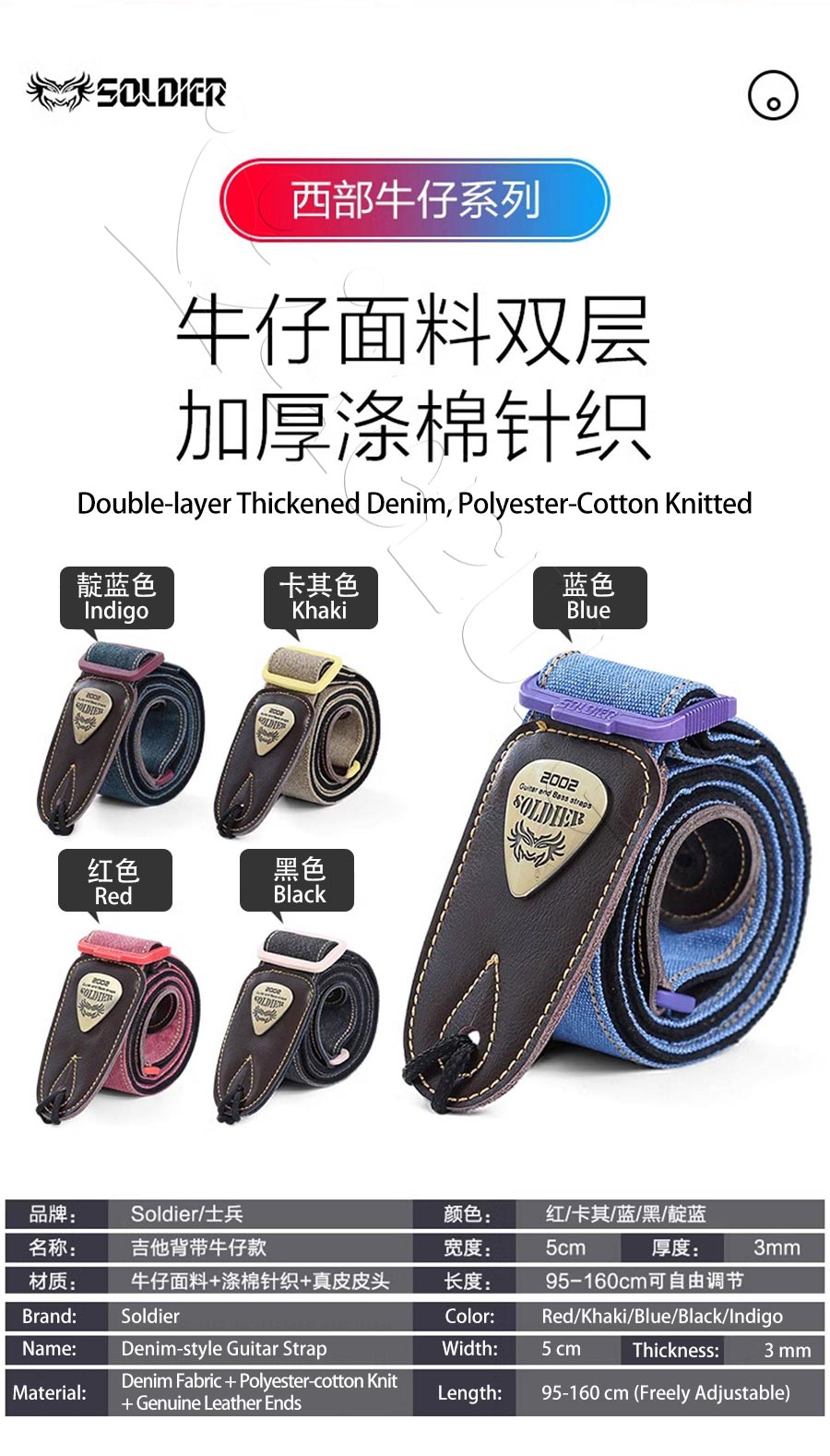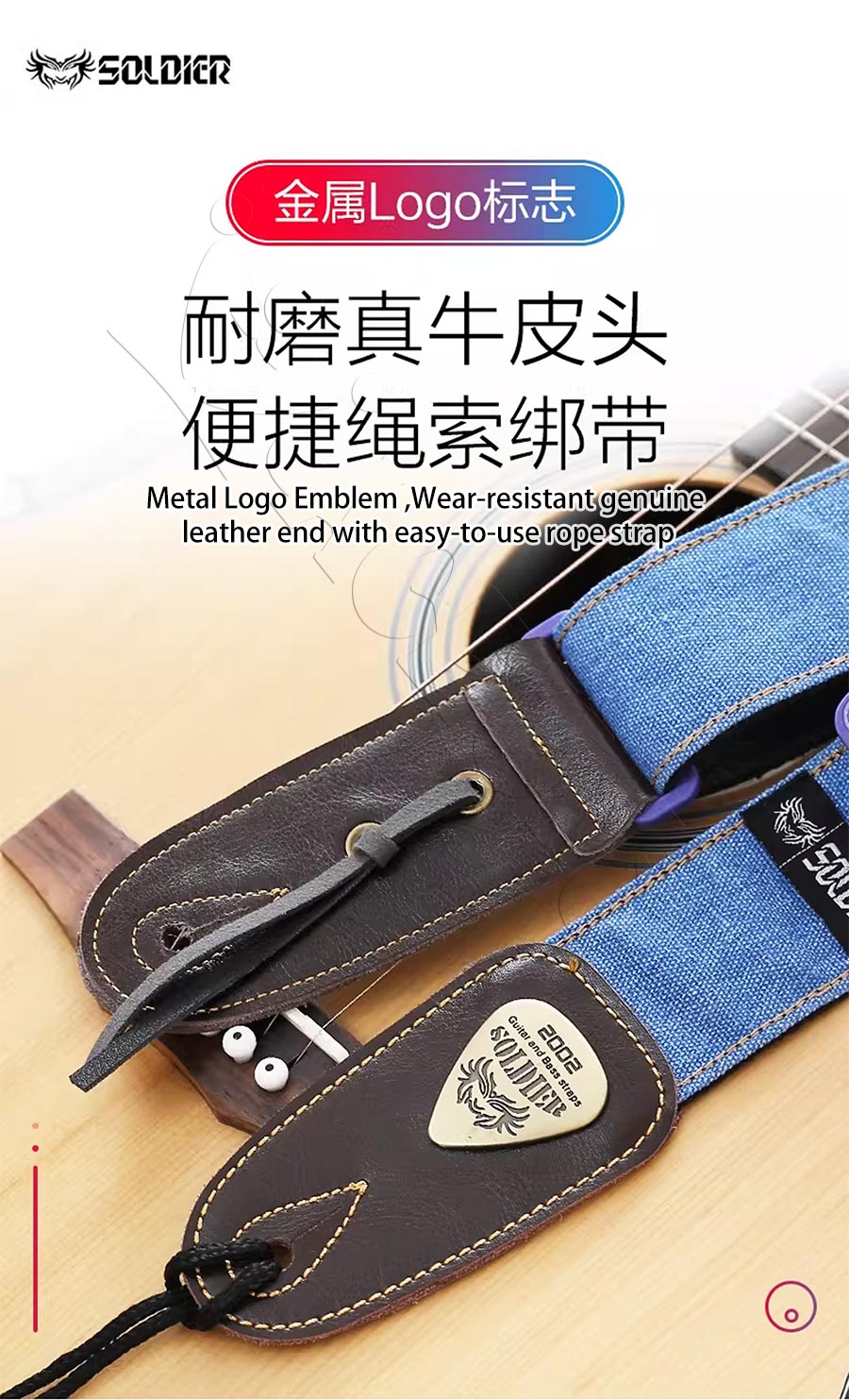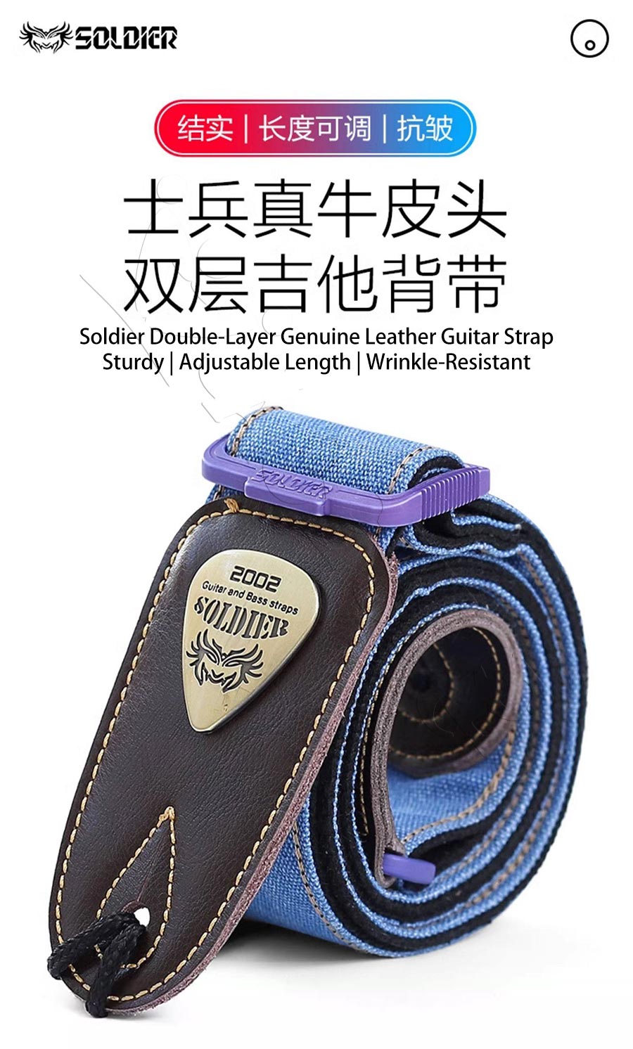 Soldier Folk Guitar Strap Universal For Electric Guitars Basses Classic Crossbody Style Genuine Leather