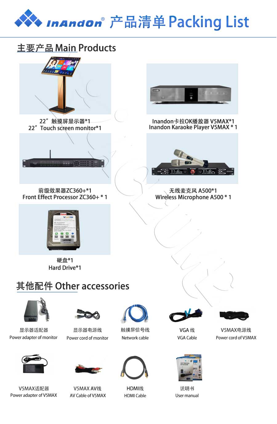 TSRINZA Series UNIVERSAL 1TB 2TB 4TB 6TB 8TB 10TB 12TB 16TB 20TB 22" MIC INANDON Karaoke Player Machine Online Movie Dual System Coexistence Real Time Score The Newest Stytle 22" Touch Screen A500 wireless microphone ZC360+ Front End Karaoke Effect