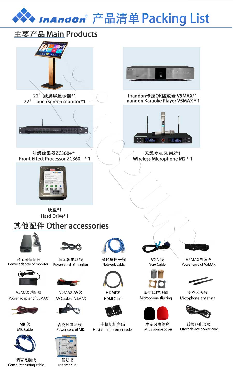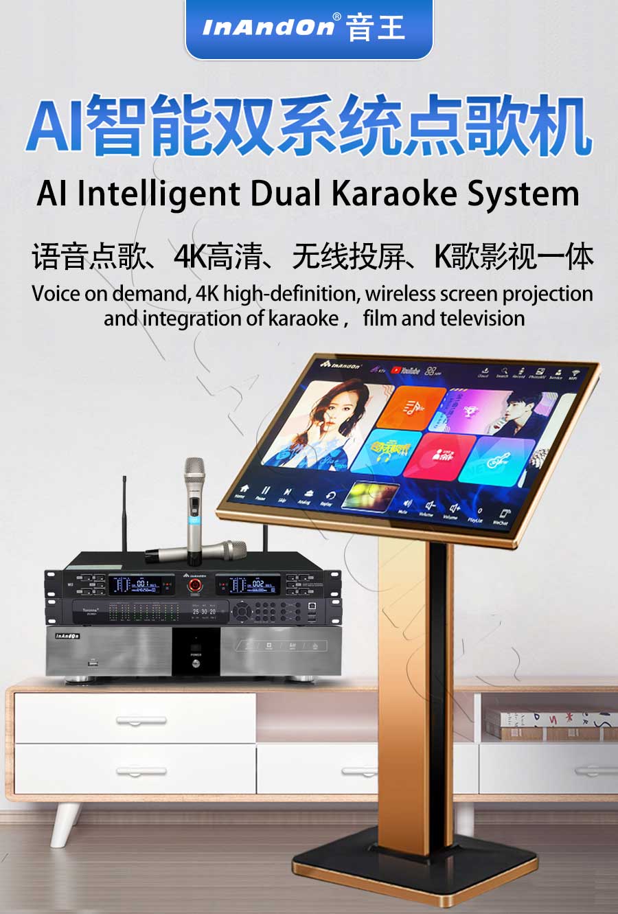 TSRINZM Series UNIVERSAL 1TB 2TB 4TB 6TB 8TB 10TB 12TB 16TB 20TB 22" MIC INANDON Karaoke Player Machine Online Movie Dual System Coexistence Real Time Score The Newest Stytle 22" Touch Screen INM2 M2 wireless microphone ZC360+ Front End Karaoke Effect