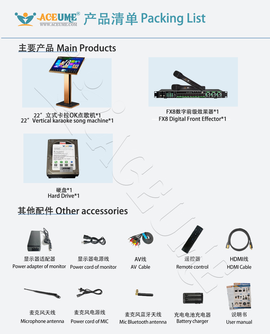 TSRPLUS8M Series 3TB 4TB 5TB 6TB 8TB 12TB 16TB 22" MIC Karaoke Player Machine Online Movie Dual System Coexistence Real Time Score The Newest Stytle 22" Touch Screen Professional FX8M Front Professional Anti Howling Front Effector With Bluetooth