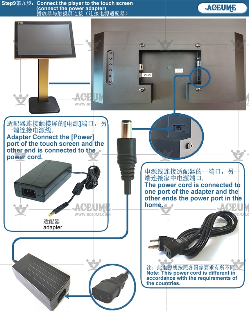 ■ The all-black circular pillar and touch screen are linked with installation video instructions for the base