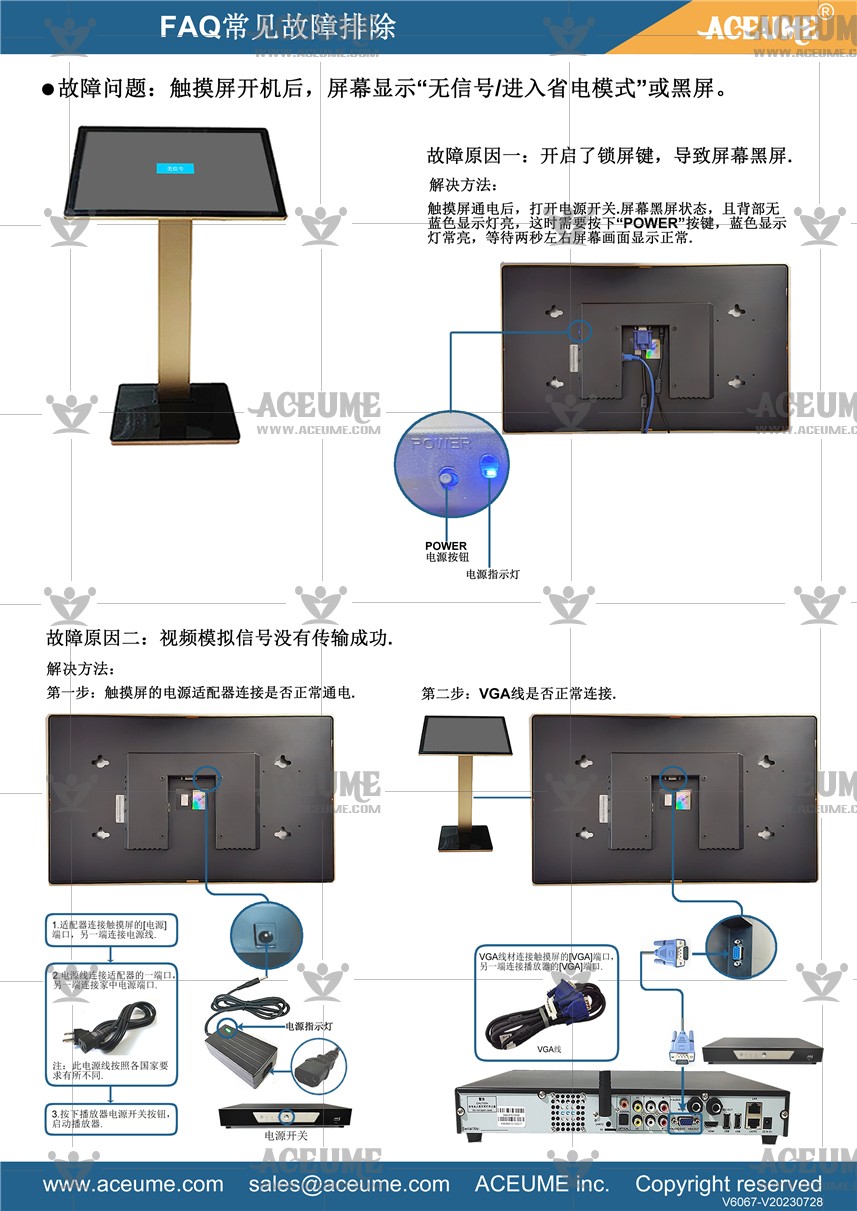 1. After turning on the touch screen, the screen displays "no signal" or black screen status. >☞https://youtu.be/hsyB8_JQFKg